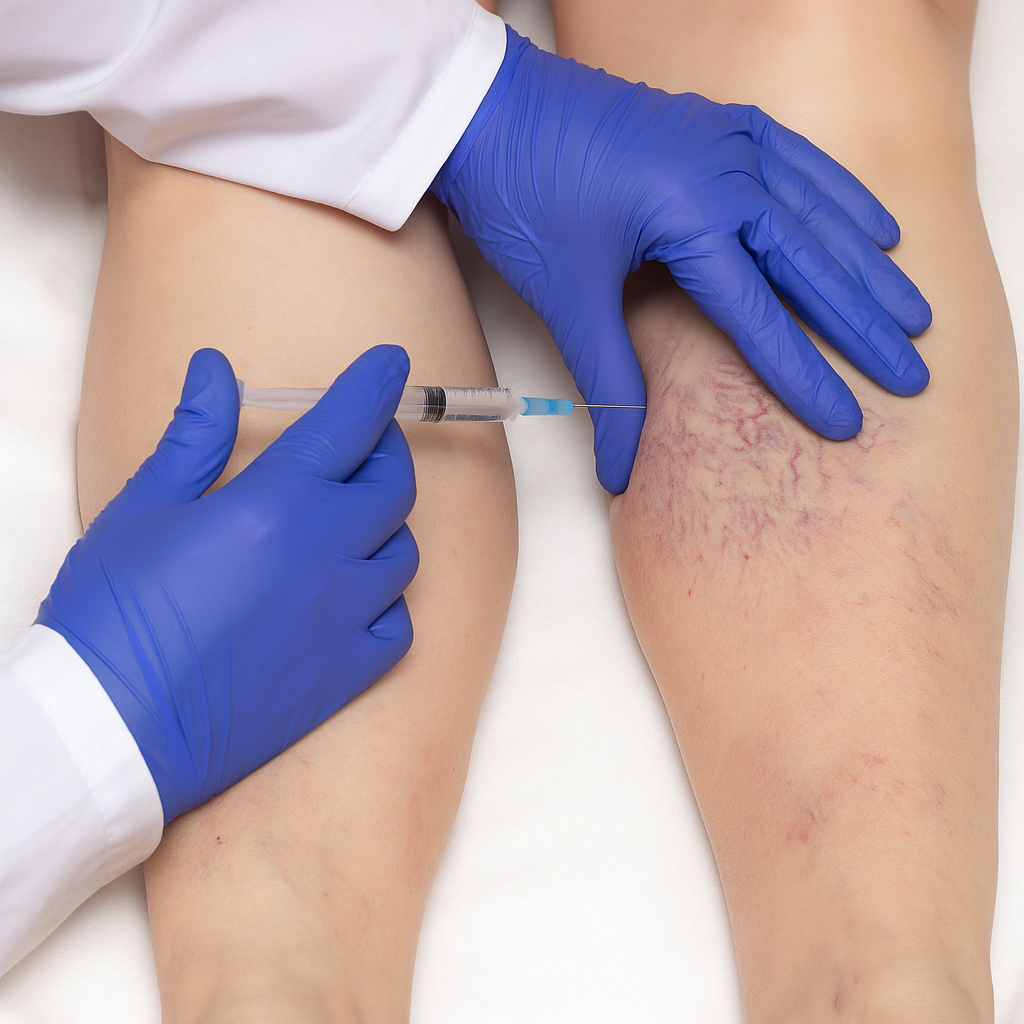 Это малоинвазивный метод, при котором в поражённую вену вводится специальный препарат (склерозант). Он вызывает слипание стенок сосуда, после чего вена со временем рассасывается. Склеротерапия проводится амбулаторно, не требует наркоза и позволяет быстро вернуться к привычной жизни. Метод эффективен на начальных стадиях и при наличии сосудистых звёздочек.
