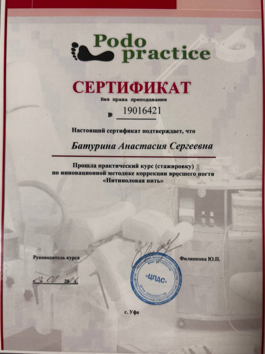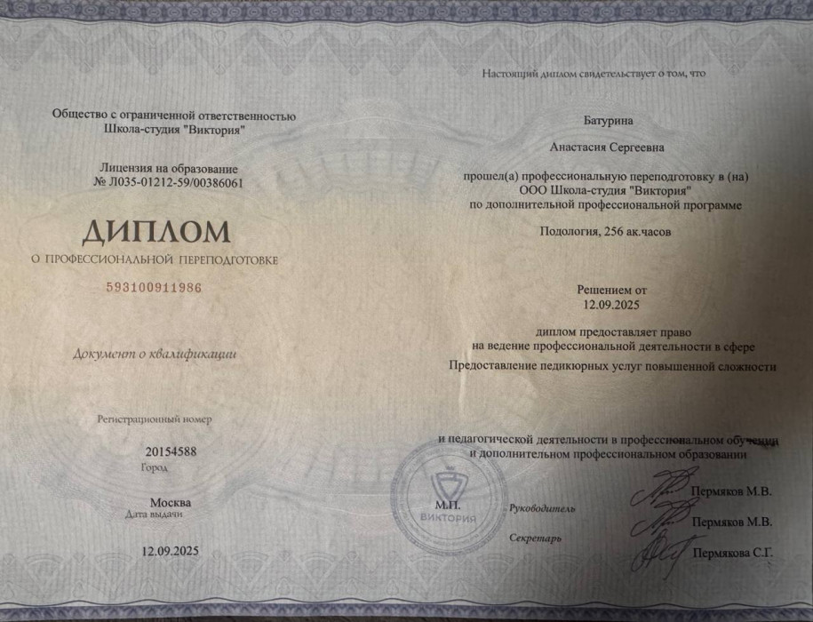 Елена обладает не только глубокими знаниями в области подологии, но и большим опытом работы. Елена – очень внимательный и чуткий специалист.